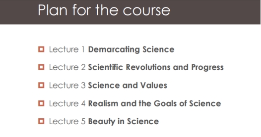 In the five specialist sessions, we studied Demarcating Science, Scientific Revolution and Progress, Science and Values, Realism and Goals of Scientific, and  Beauty In Science.