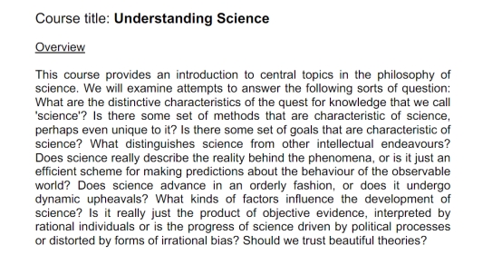 The course I attended was Philosophy of Science, which consisted of five specialist classes and two critical thinking classes.