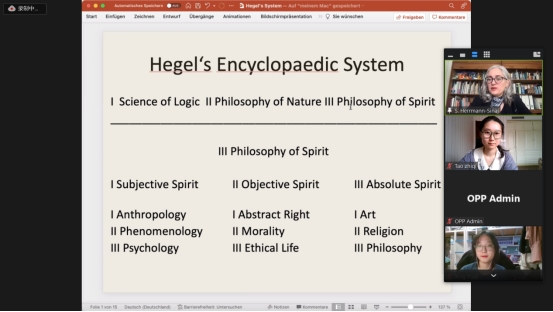 This 8-week online programme is really a memorable and fabulous experience for me. In the programme I’ve taken 4 lectures, 3 sessions, and 8 tutorials. It makes me know more about German classical philosophy, especially Kant’s and Hegel’s. In tutorials I need to take initiative to express and share my opinions, instead of just listening to what the tutor said and comprehending them. This indeed urges me to read core reading and supplementary reading materials before (and search more information almost always), take notes, identify the thesis and the argument, think more about my own view, do more critical reflections, try to give some objections or defend the philosophers’ arguments, express and discuss to engage in these tutorials. These do help me so much, my ability of reading, listening, writing and speaking have been improved a lot. Moreover, I’ve experienced this special teaching form and the characteristics of the western education system. What’s more, it also develops and improves my skills in analysing and making philosophical arguments. During the programme, I handed in two essays, and I’ve already received the feedback from Dr Susanne, my tutor, this let me have a better understanding of English academic writing. Additionally, it arouses my interests of German classical philosophy.
