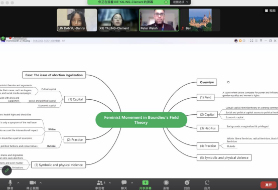 In the learning process, interactive Q&A sessions encourage us to prepare for material study and on-site English expression. The course develops our analytical skills and intellectual understanding, thereby enabling us to engage in an analysis of theoretical debates in an informed and rigorous