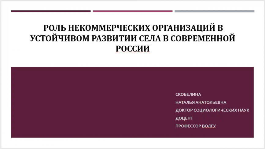 来自俄罗斯伏尔加格勒国立大学社会学与社会技术性的Skobelina Natalya Anatolyevna教授介绍了非营利组织在当代俄罗斯乡村可持续发展中的角色。她指出俄罗斯政府从2000年开始支持非营利组织部门,主要包括成立农业协会联合会、发放农业补助金发展农业、租用场所获得补贴优惠贷款、激励青年学成归乡发展农村等方面。在国家的支持下,非营利组织对农村发展中发挥着重要作用,成效显著。