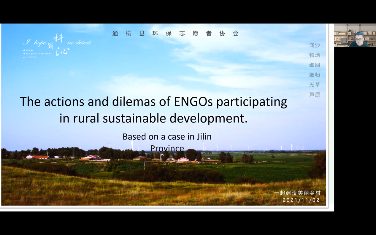 社会学系李远老师分享了环保组织参与乡村可持续发展的行动与困境研究。李远博士首先介绍了通榆环保志愿者协会,自2000年以来一直致力于科尔沁沙地草原的生态恢复工作,同时帮助村民成立自助小组,将乡村的生态恢复与可持续发展结合起来。目前,公益组织面临依赖性与自主性的两难困境。一方面村民依赖组织,不愿独自承担风险;另一方面,村民在自治团体中逐渐有了自己的目标,逐渐脱离公益组织的控制。这对公益组织的发展和环境保护的可持续发展提出了挑战。