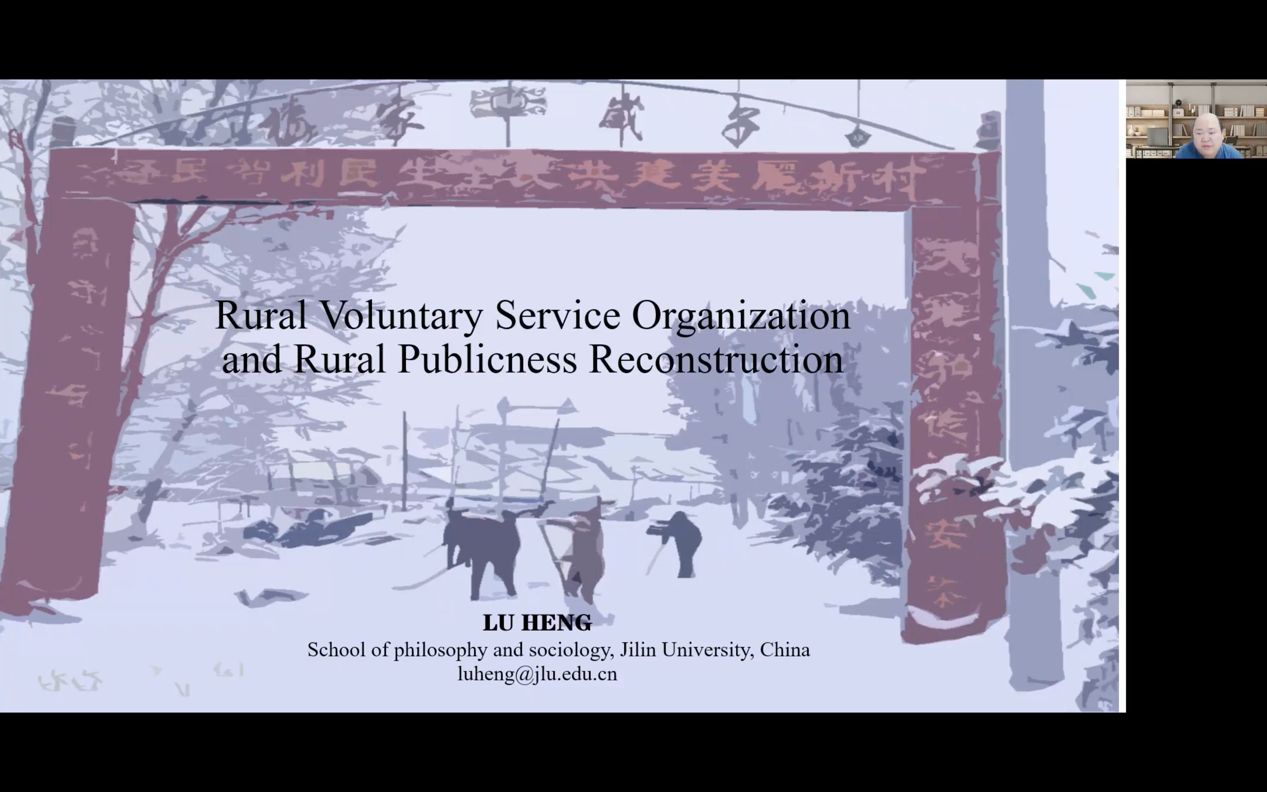 芦恒教授介绍了农村志愿服务组织与乡村公共性重建的研究成果。他用公共性框架解释农民志愿者服务,公益性、农民公共参与和公共伦理等构成了乡村公共性。农民互助和社会救助,进行疫情防控检查都是对农村公共利益的保护。总体来看,农村志愿服务对农村可持续发展具有重要的作用。