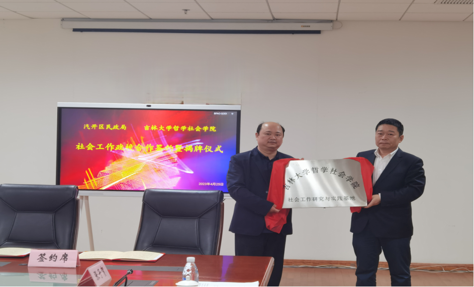 与长春汽车经济技术开发区民政局友好协商,联合建立“社会工作研究与实践基地”。2023年4月25日下午13:30,副院长芦恒教授带队与汽开区民政局在汽开区管委会大楼进行政校合作签约揭牌仪式活动。91av