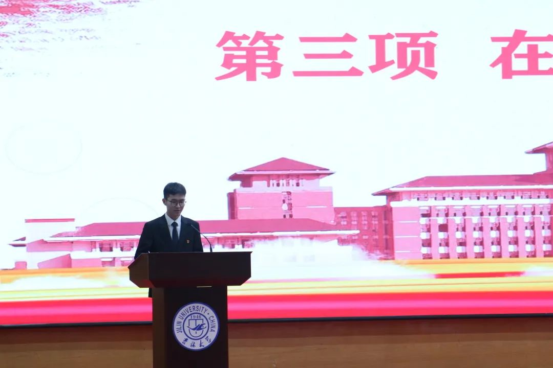 典礼第三项,由在校生代表2018级哲学专业本科生刘昕冉上台发言,为毕业的师兄师姐们送上诚挚的祝福和殷切的期盼。以毕业的师兄师姐们为榜样,激扬青春、不负韶华!希望师兄师姐们能在未来“乘长风破万里浪”,翩翩归来、仍是少年!