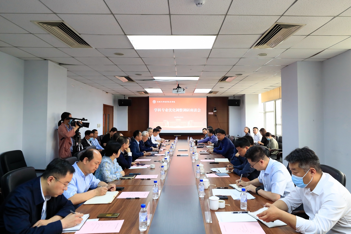 院长白刚围绕学院近五年取得的成绩、学科建设存在的问题与改进措施等进行汇报。与会人员重点围绕学科专业调整优化工作进行深入交流。