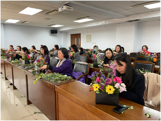在东荣大厦904会议室举办了“情暖三月 花漾哲社”主题插花艺术鉴赏活动。学院30余名教职工参加了本次活动。