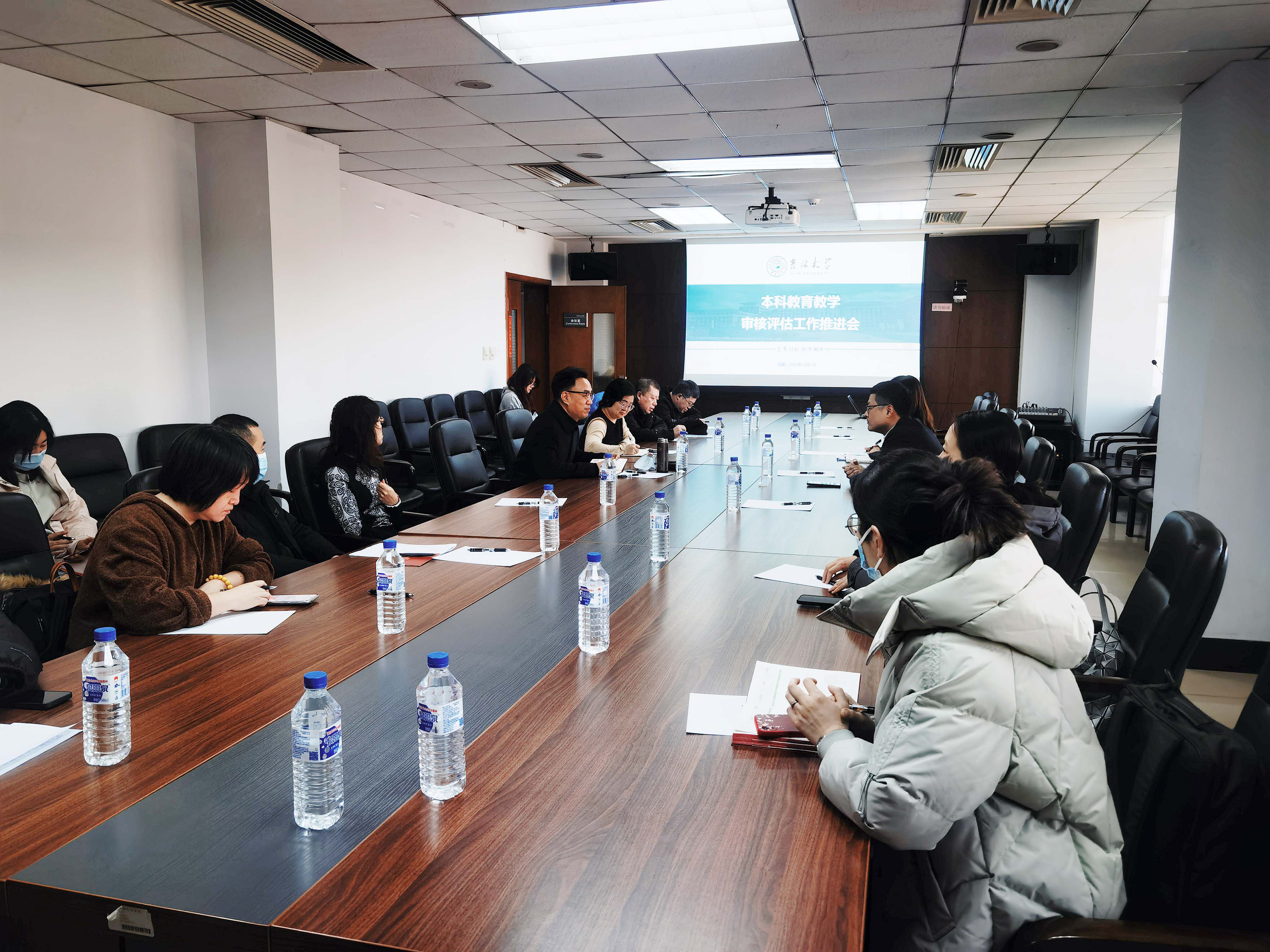 于2023年12月1日上午召开本科教育教学审核评估工作推进会。教务处教学质量监控与评估办公室主任陈卓、教务处质量评估科科长李园、学院党委副书记、纪委书记赵洁、副院长朱文君、学院各系主任、系副主任、教研室主任、各行政办公室负责人参与会议。会议由李龙副院长主持。