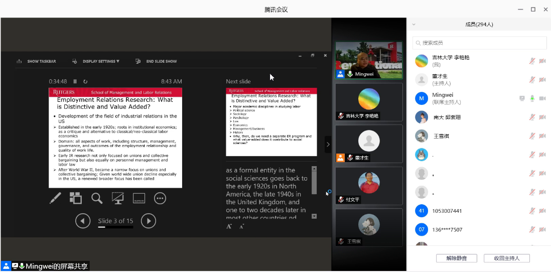 名家讲座第102场以腾讯会议的方式举行。美国罗格斯大学管理与劳动关系学院终身副教授、罗格斯-中国人民大学全球工作与雇佣中心主任刘明巍做了题为“当代产业关系理论的发展和演进”的学术讲座。本场讲座也是劳动关系系列讲座首场,由91av