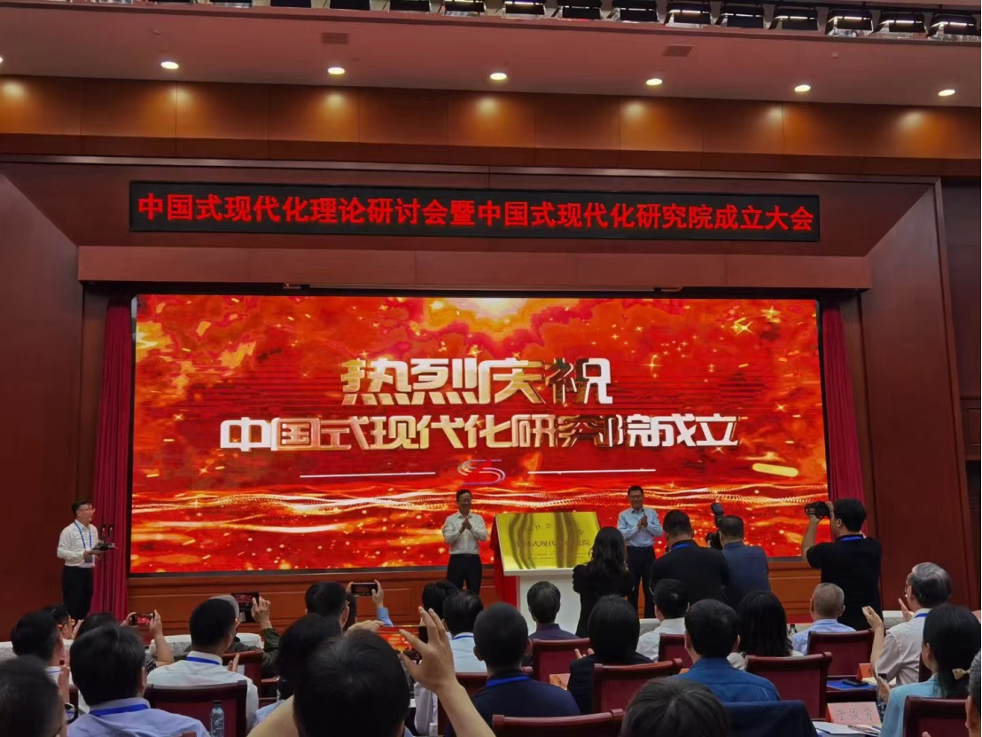 为深入学习贯彻习近平总书记关于中国式现代化的重要论述,进一步推动中国式现代化研究理论创新,6月18日,由中国社会科学院主办的中国式现代化理论研讨会暨中国式现代化研究院成立大会在北京隆重举行。中国社会科学院院长、党组书记高翔出席开幕式并作主旨演讲。中央宣传部副部长、全国哲学社会科学工作办公室主任洪大用,中央社会工作部副部长柳拯出席开幕式并致辞,中央机构编制委员会办公室副主任张雅林出席开幕式,中央党校(国家行政学院)副校长(副院长)龚维斌,民政部党组成员、副部长唐承沛,中国人民大学党委书记张东刚,国家机关事务管理局党组成员、副局长徐永胜出席开幕式并致辞,中央纪委国家监委驻中国社会科学院纪检监察组组长、中国社会科学院党组成员杭元祥,中国社会科学院副院长、党组成员王昌林,中国社会科学院秘书长、党组成员赵志敏出席开幕式,开幕式由中国社会科学院副院长、党组成员赵芮主持。