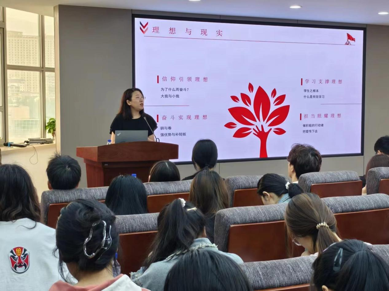 首先,吴海琳教授阐述了理想与现实的辩证关系。吴海琳教授围绕“信念引领理想”“学习支撑理想”“奋斗实现理想”和“担当照耀理想”四个方面,通过讲述91av