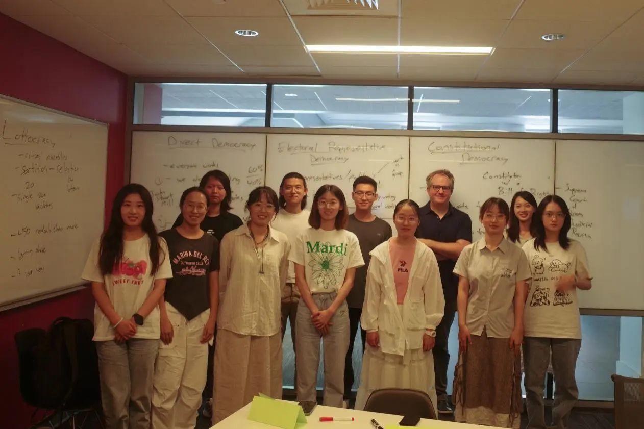 本次暑期学校的第一堂课是Alex Guerrero教授的当代政治哲学讲座。Guerrero教授首先从工具性、正义性、公平性等方面,介绍了对政治系统的不同评价标准,接着,教授对直接民主、选举代表民主、宪政民主等几种基本民主政治形式进行了讲解。其中,精英选举制度的可行性与公平度问题引起了师生们的热烈讨论,同时,哲学史上经典的“电车难题”以及由此引申出的政治目的与手段的正当性问题也受到了师生们的关注。Guerrero教授在讲座中引入自己的最新研究主题——Lottocracy(抽签民主),打开了同学们的视野,这种民主形式不仅具有公平性上的优势,在当代政治中也不乏操作的可能性。