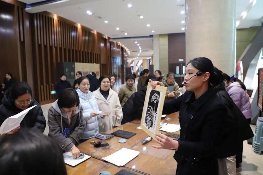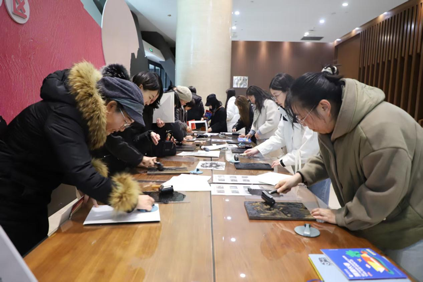 活动伊始,师生们在工作人员的引导下,共同参与拓印体验活动,这项传统工艺的魅力深深吸引着大家的参与兴趣,现场氛围欢快热烈,欢声笑语连连。