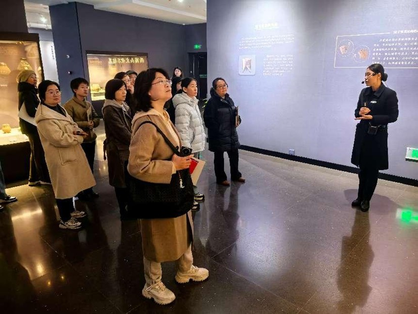 走进展厅,大家共同开启了一段与历史和现实深入对话的美妙之旅。通过“溯源长春展”,大家更加细致了解长春早期的历史发展过程;在“吾道何之书画展”中,大家欣赏到了从元代至近现代的书画精品,感受着中国书画艺术的博大精深;“山海爵青铜器展”则带领大家穿越时空,领略了古代青铜器的精湛工艺与丰富文化内涵;在“春和景明瓷器展”中,大家共同观赏着精美的瓷器展品,承古创新、形象生动的展品引得大家称赞;在“国色天工”展览中,大家跟随工作人员的讲解思路,移步观景,在以“色、相、技、艺”交相辉映的藏品线索中领略着中国优秀传统文化的独特魅力。
