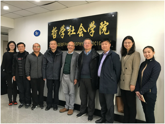 在909会议室与社会学系师生进行座谈交流。座谈交流会由社会学系主任董运生副教授主持,田毅鹏教授、林兵教授、王文彬教授、陈鹏教授、祁静博士、李珮瑶博士及博士生刘凤文竹参与座谈。