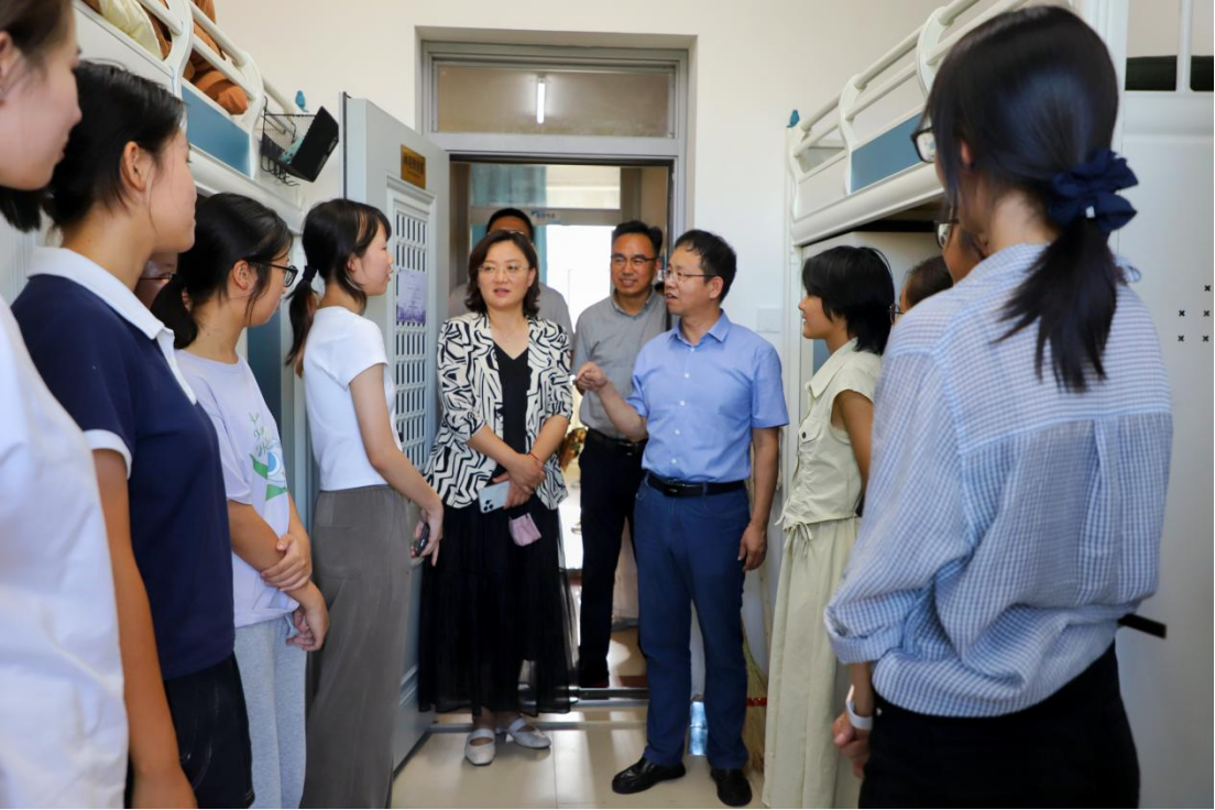 院长白刚、党委书记张晓萌带队前往学生宿舍走访看望2025级本科新生。学院党委副书记兼副院长朱大卫、副院长李龙、学生工作办公室老师们以及辅导员助理同学们共同参加本次活动。