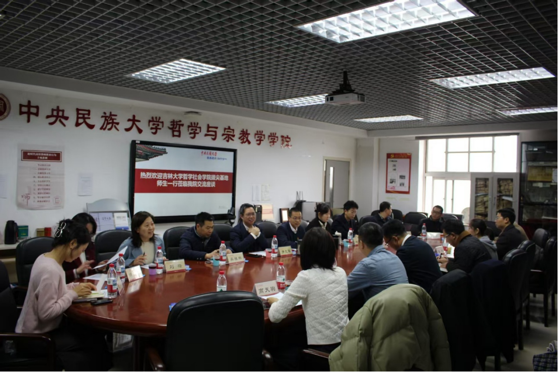 11月6日,研学团队抵达中央民族大学哲学与宗教学学院,开启研学活动。哲学与宗教学学院院长尹志华、党委书记王海锋分别介绍了学院的成长历程、发展现状、学科特色以及人才培养模式等内容。