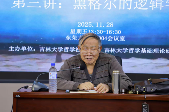 更进一步,王天成教授阐明了黑格尔哲学的概念是通过质、量和尺度的三个小环节深入到本质的环节,将在场师生们引入到认识的开端和绝对的开端——存在的认识中去。通过历史性的追溯,王天成教授追溯到了黑格尔逻辑学的开端问题,强调开端问题类似于宇宙大爆炸的,既简单又复杂,包含了能动的机制。同时,黑格尔认为开端必须是无规定的,规定由发展而来,但又不能是完全的否定。黑格尔提出,无限和有限是相互矛盾的,但在有限物中可以找到无限。他认为,无限和有限的关系是无穷进展,需要在直观层次之外去寻找。总之,黑格尔的哲学开端观念强调了事物的界限、性质和无限性之间的关系。