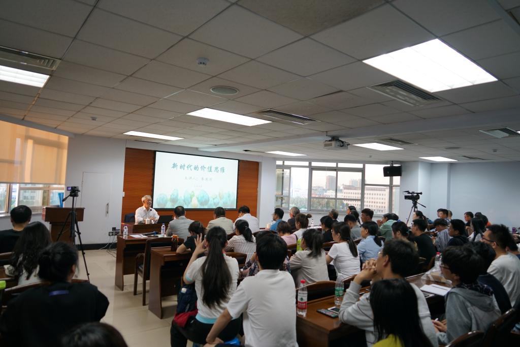 李德顺教授首先从价值观与价值思维的角度出发,为“新时代”作出界定。他指出新时代和旧时代的分水岭在冷战结束时期。在新时代之前,人类的思维方式是独断主义的,冷战的结束意味着这种思维方式在实践中的终结。接下来,李德顺教授提出,新时代的开始需要价值思维的变革。价值问题不能与真理问题与知识问题混为一谈,我们要摆脱单一主体思维,进入多元主体思维。寻求多元主体的权利与责任的统一,从而确立社会的秩序、人与人的关系,寻找新的平衡与和谐。最后,通过对个人主义、自由主义、共同体主义(社群主义)的对比,李德顺教授指出现实社会的主体结构在横向上与纵向上都是多元的,不同层面上的主体有不同的权利和责任,不能把共同体、个人和整体割裂和独立起来。当今世界价值矛盾、价值冲突越来越成为主要话题,对此,我们不能急于给每个问题以答案,而是要首先校正思考问题的思维方式,这是新时代的价值思维的观念变革所要做的事情。