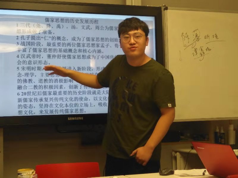 此次学术交流将进行三场。第一场工作坊的主题为儒家文化的精神价值。本科生王璇、硕士研究生马国维、硕士研究生苏亚龙、本科生潘昕培同学分别以“孝、礼、仁、儒家文化发展的历史”等四个方面进行报告和讲解。报告后,四位同学与中方院长刘婧一老师、学院青年教师、研究生代表进行深入地交流,对中西方文化有了更深刻地了解。在传播儒家优秀传统文化的同时,加强国际化思维和逻辑,同孔子学院一起更好地推动中华文化的国际化、世界化进程。
