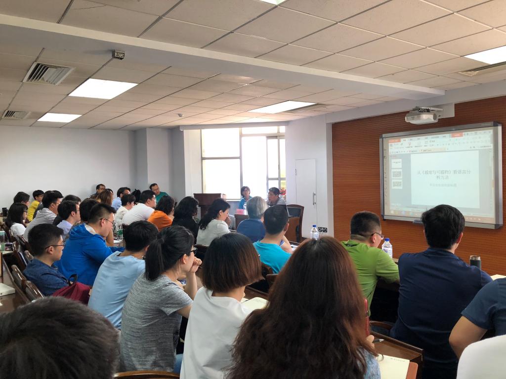 陈嘉映教授对英国著名哲学家奥斯丁的《感觉与可感物》进行了精妙的拆解和细致的剖析,通过奥斯丁对艾耶尔的批判生动地展示了日常语言分析的哲学方法和哲学风格。陈先生的讲座涉及当代哲学语言学转向中的若干精微问题,对某些重要环节有简洁而发人深省的评论。在讲座之后,与会师生同陈嘉映教授进行了热烈而坦率的交流,陈嘉映教授高度评价本校师生通过评论和提问显示的研究水平和学术水准。