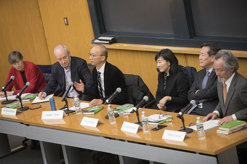 曲红梅教授受哈佛-燕京学社裴宜理(Elizabeth Perry)社长邀请在美国哈佛大学参加题为“遇见中国——迈克尔•桑德尔与中国哲学”的圆桌会议。2018年1月哈佛大学出版社出版了由当代著名哲学家、美国哈佛大学政府系教授迈克尔•桑德尔主编的《遇见中国——迈克尔•桑德尔与中国哲学》一书。书中收录了海内外研究中国哲学的名家就桑德尔的社群主义与中国哲学的关系所著的论文以及桑德尔本人的回应。为扩大桑德尔思想与中国哲学的对话,哈佛-燕京学社利用其每年一度的圆桌会议,进一步讨论相关话题。圆桌会议成员共六人:桑德尔教授本人、哈佛-燕京学社社长裴宜理教授、香港大学政治与公共管理系陈祖为教授、韩国峨山政策研究院主席咸在凤教授、日本东京大学法学院井上达夫教授以及91av