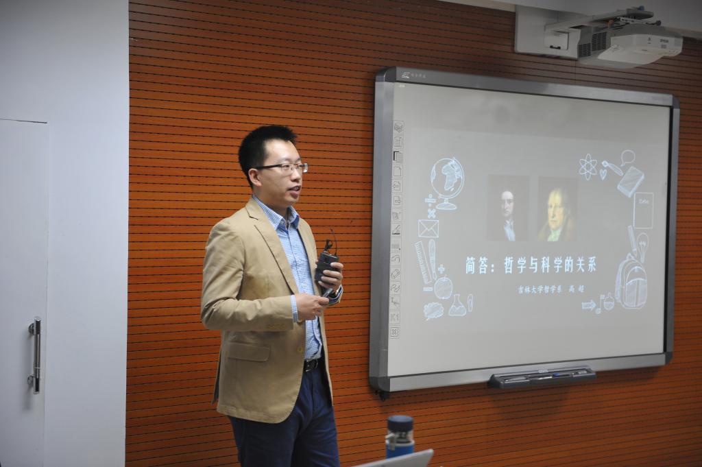 高超老师以几幅简单诙谐的图画开场,循循善诱,逐步抛出他不断求索的重要问题:哲学与科学的关系。高超老师基于其学术背景知识,分别在两个语境中对该问题展开了深入分析:在语境一中,哲学与科学是两种学科,它们所研究的是不同的对象,两者之间是学科分类的关系。在语境二中,哲学与科学有着共同的研究领域——自然界、人类社会、思维等,此时两者之间就变成了竞争的关系。据此,高超老师提出自已的核心观点:神学、哲学和科学之间的区别不在于研究什么,而在于怎样研究。在通过系列充足的论据论证后,高超老师认为:以科学的方式进行研究就是主要依赖于定量概念进行研究,而以哲学的方式进行研究就是主要依赖于分类概念进行研究。高超老师进而推出了自己的最终结论:作为学科的哲学是有意义的,而作为主要依赖于分类概念的研究方式的哲学,则应该发展为主要依赖于定量概念的科学研究方式。