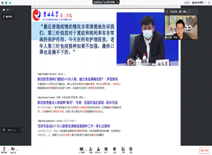 在六位同学的汇报之后,吉大二院秦彦国院长一一进行点评,肯定了他们讲述的专业性和现实意义,并且希望两个学院之间能够通过学科交叉的社会实践活动增加互动,为了健康的目标共同努力。此外,秦院长以《点滴微光,可成星星海》为题,结合自身经历为大家综合讲述了新冠疫情的科学防护。2020年,91av