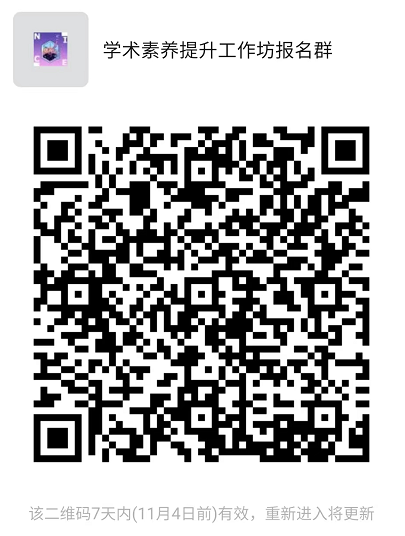 请申请人于2022年10月31日(星期一)上午11:00点前将报名申请表(附件2)、学生证扫描件发送邮件至[email protected](注明:工作坊申请+姓名),同时扫描以下二维码,加入微信群,以便接收后续通知。