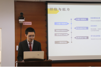 随后,刘奔腾同学表示感谢各位老师和学生干部同学参与本次换届答辩会,希望参与换届答辩的20级同学们树立正确的荣誉观,合理协调学习与学生工作的的关系,做到全面健康发展,在日常工作学习中积极发挥模范带头作用。
