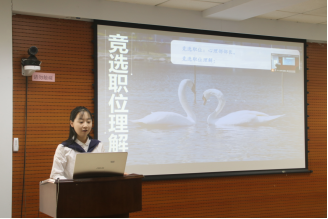接着,学生会20级参与换届的王梓铭同学、廖晨阳同学、张棋淋同学、曾辞源同学、丁宇轩同学、马逗逗同学、孙映雪同学、宗姝辛同学依次进行了答辩,同学们分别从自我介绍、职位理解、活动回顾、工作设想四部分进行了讲述, 一致表示要积极践行学生会全心全意为同学服务的宗旨,充分展现了哲社学生干部应有的优秀素养。