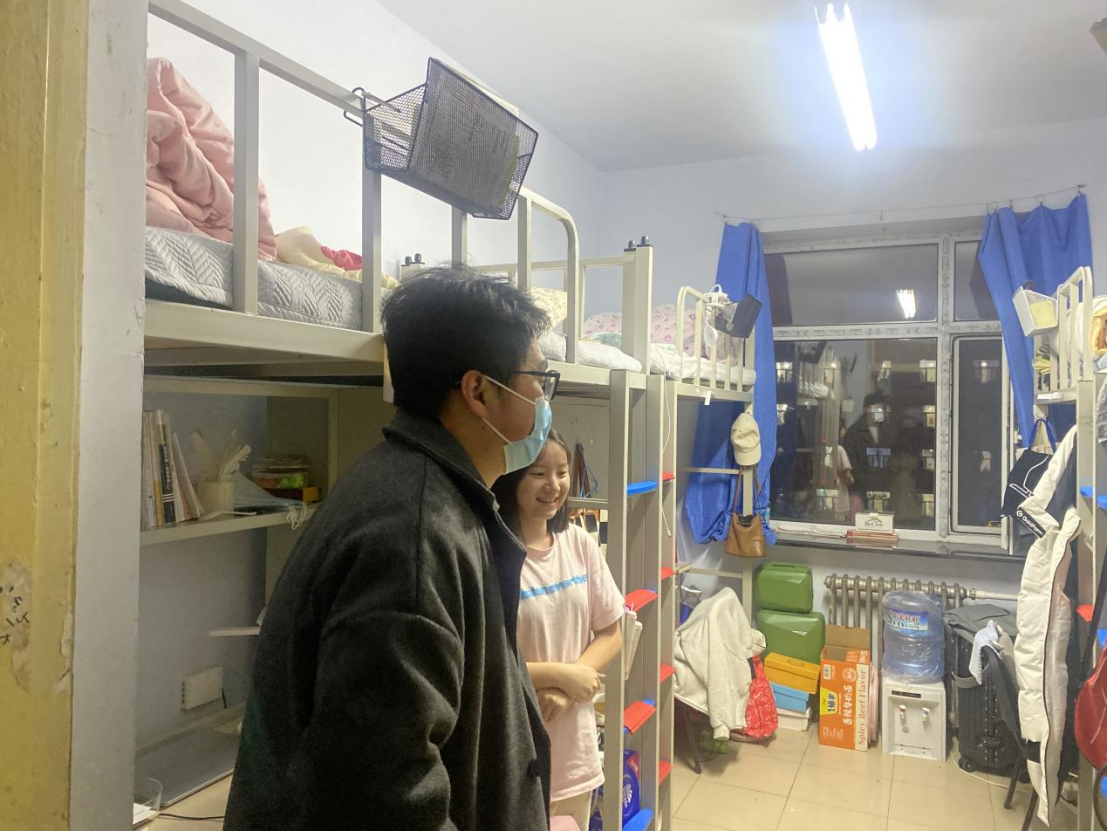 辅导员宋绍伟老师对南苑三公寓、南苑四公寓、北苑二公寓的学院四个年级本科生公寓进行走访。
