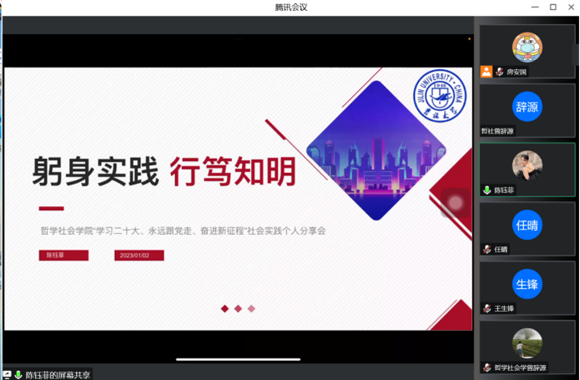 寒假社会实践活动,院团委召开经验分享会,邀请学院四位本科生分享自身社会实践经验。分享会由房安国同学主持,22级全体同学参会。