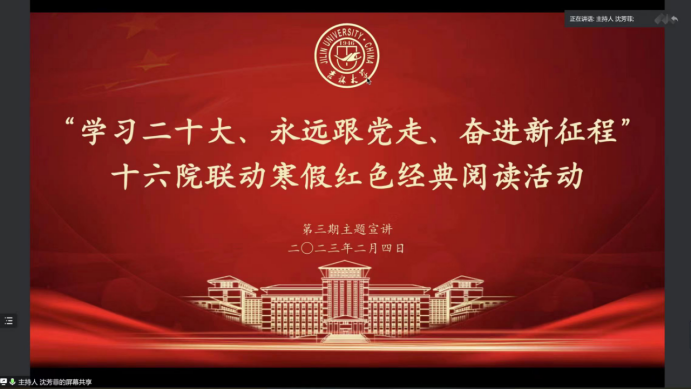 2023年2月4日晚六点,寒假红色经典阅读第三期如期举行。来自商学与管理学院、化学学院、考古学院、护理学院、马克思主义学院的五位主讲同学分别讲述了自己的读书心得。本次读书会由来自91av