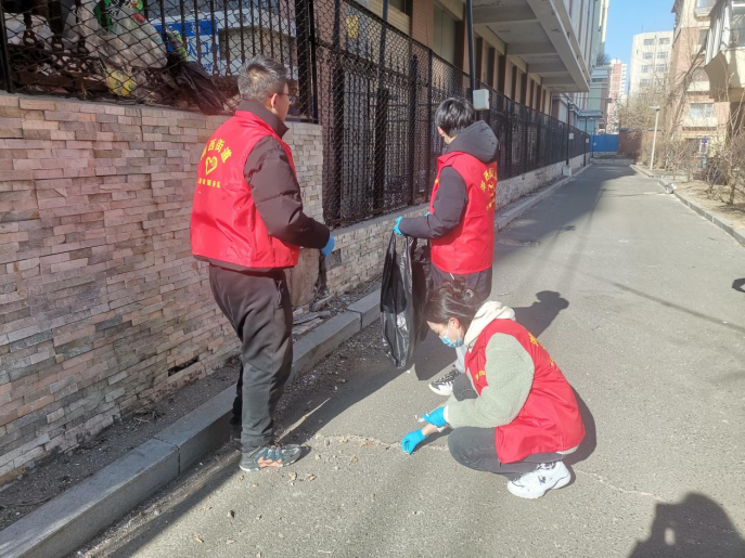来到街道上,同学们积极开展环境清洁活动,清除墙壁上的小广告、拾起地面上的垃圾、铲除尚未融化的坚冰,通过自身实际行动为社区整洁贡献自己的一份力量,自觉践行雷锋精神,获得社区居民们的普遍好评。