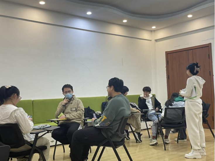 第四个环节是“情景剧编演”。以小组为单位围圈坐下,组长询问大家近期遇到过什么烦恼?或者有什么困惑?大家将烦恼写在纸条上,每组根据纸条上描述的内容编排一个不超过5分钟的情景剧,可以在剧中给出烦恼解决方法,也可以只是把这个烦恼表达出来。拥有该烦恼的本人可以作为主角参演也可以作为导演编排情景剧。每组情景剧表演结束,其他组同学都自愿发言,讲述个人看法,谈个人体会。主角表达、觉察、正视、体验和反思,在参与演出、分享环节有机会宣泄,提供多元视角,具有情感体验。