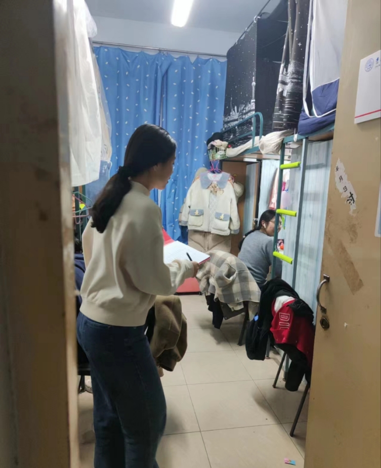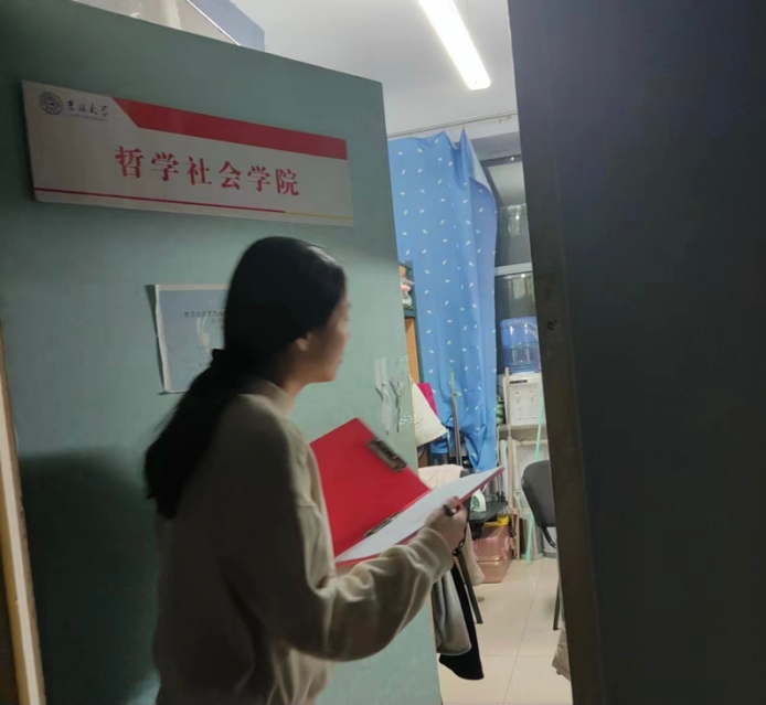 为落实学校寝室管理相关工作要求,引导91av 学生关注寝室文化建设,91av 生活管理委员会持续开展了细致全面的例行查寝工作。2023年4月10日,由辅导员宋绍伟老师组织,生管会开展全年级查寝工作。