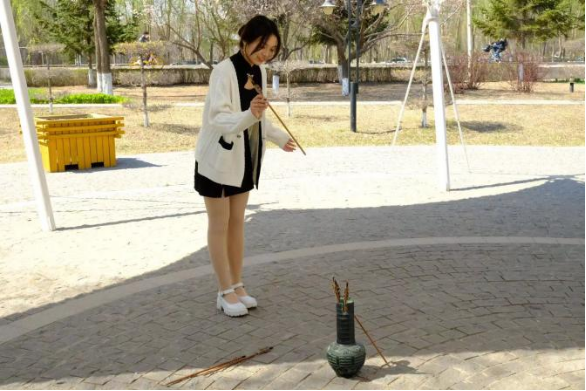 “暇日宾月集,投壶雅戏同。”在接下来的投壶环节中,同学们纷纷感受着传统文化的魅力,一次次投中、一声声喝彩,欢声笑语中、在投掷起落间,同学们品味着千百年前文人雅士的闲情逸致。