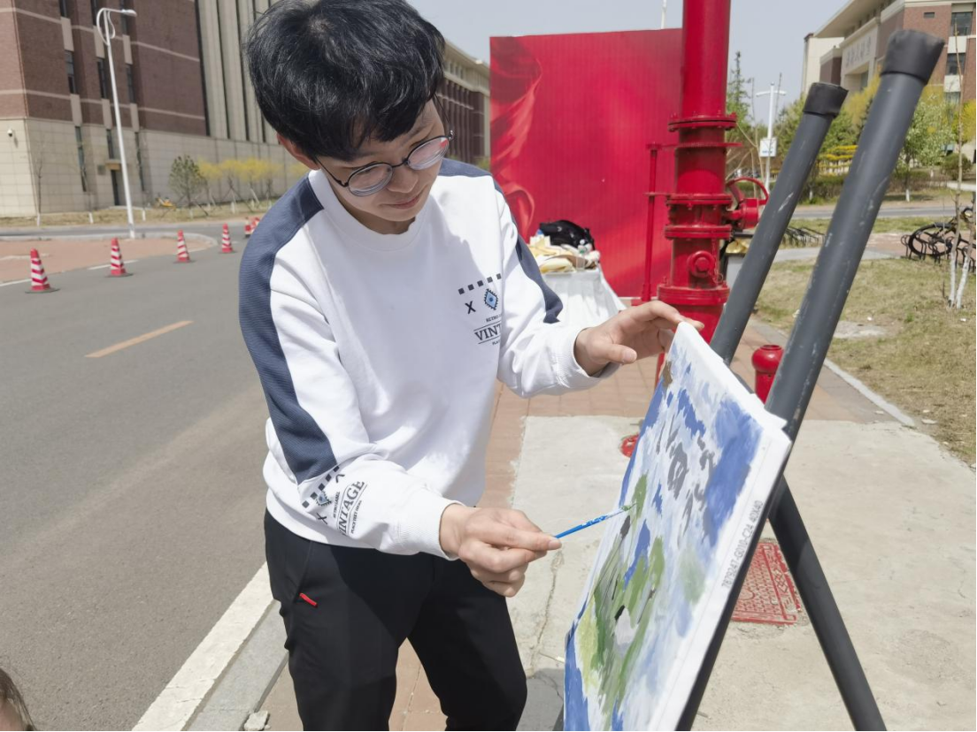 志愿者同学们积极引导参与活动的师生们在事先准备完毕的画布上挥动画笔,留下青春的色彩。