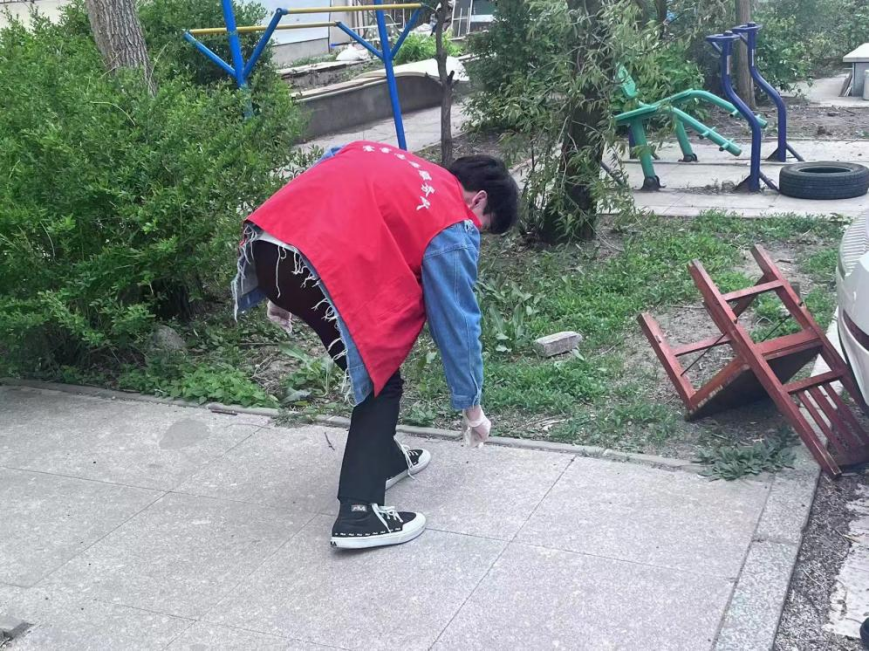 志愿者同学们统一身着红马甲,以积极饱满的精神风貌与高度负责的志愿精神,深入社区的路边、街角以及楼道,开展拾取垃圾、清除广告等环境打扫工作,同时为社区居民宣传垃圾分类的相关知识。