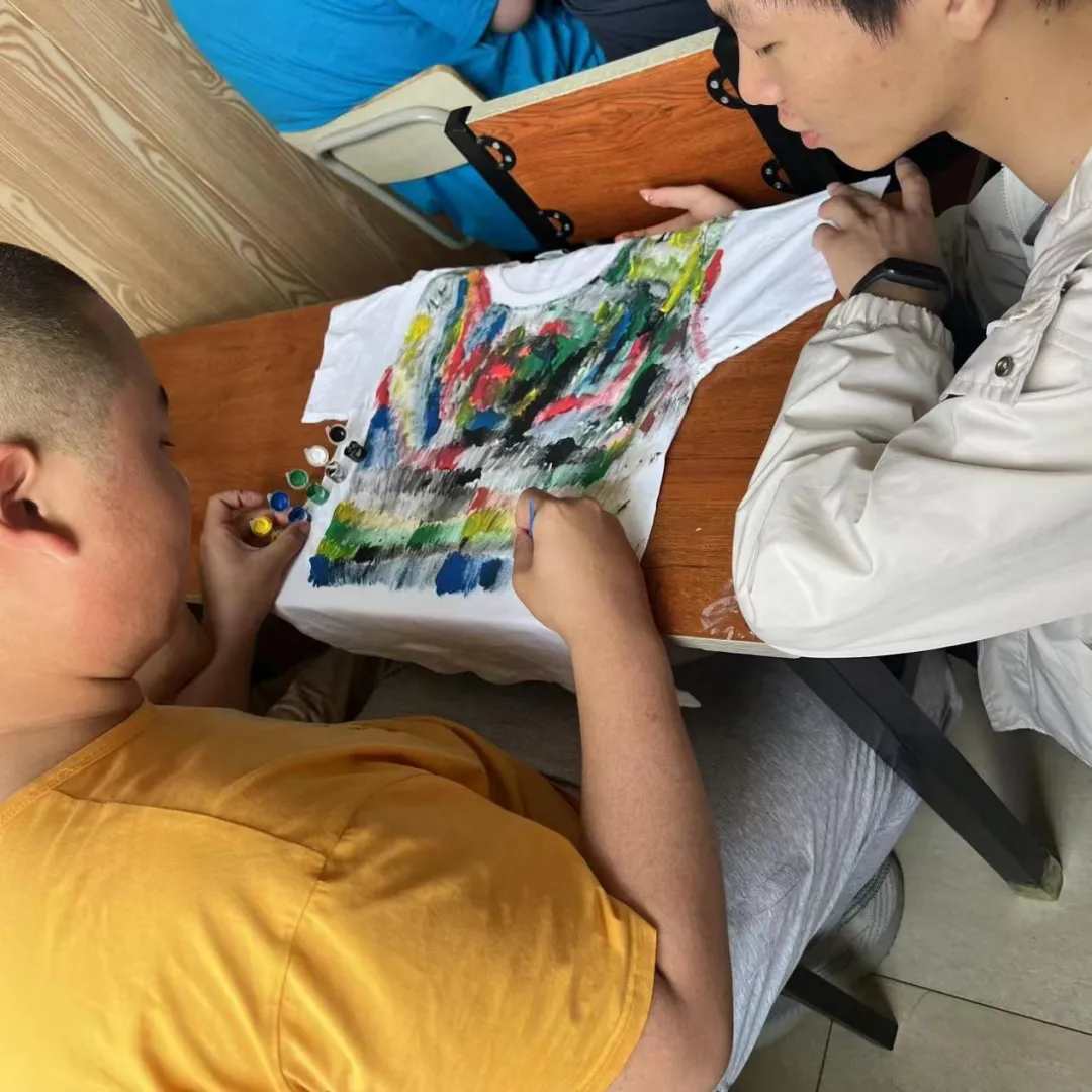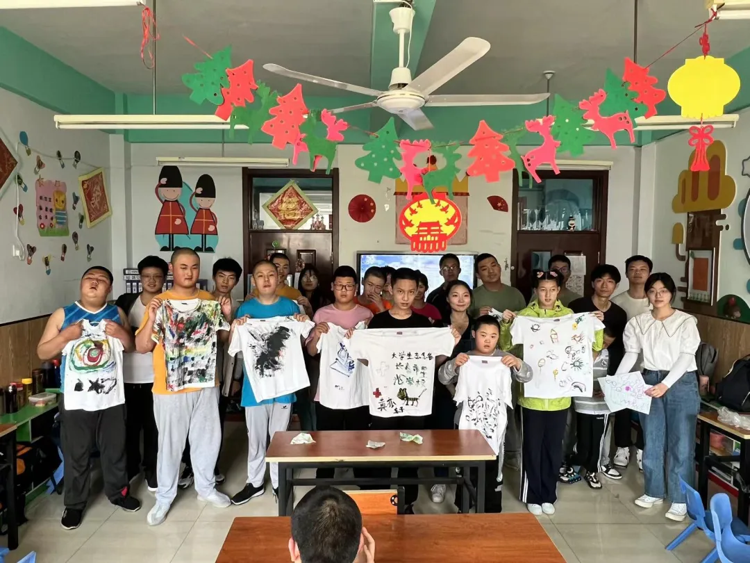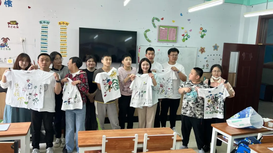 本次的活动内容是绘制T恤。志愿者与孩子们一同在纯白的T恤上进行手工绘画,在拉进彼此心灵上的距离的同时,也传达出小朋友们心中那份难以用语言表达出的灵感。绘制结束之后,志愿者和小朋友们同绘制的T恤进行合影,并将T恤送给了孩子们,作为这次美好回忆的留念。