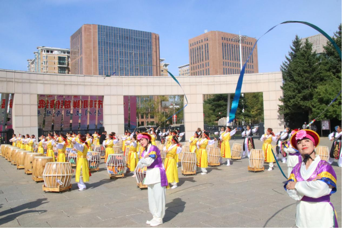 青年志愿者们现场观看了朝鲜族传统文化表演,领略朝鲜族特色民俗文化,深入感受朝鲜族的风土人情,在朝鲜族歌声与舞蹈之中进一步凝聚对于同属一个中华民族的文化认同,铸牢中华民族共同体意识。