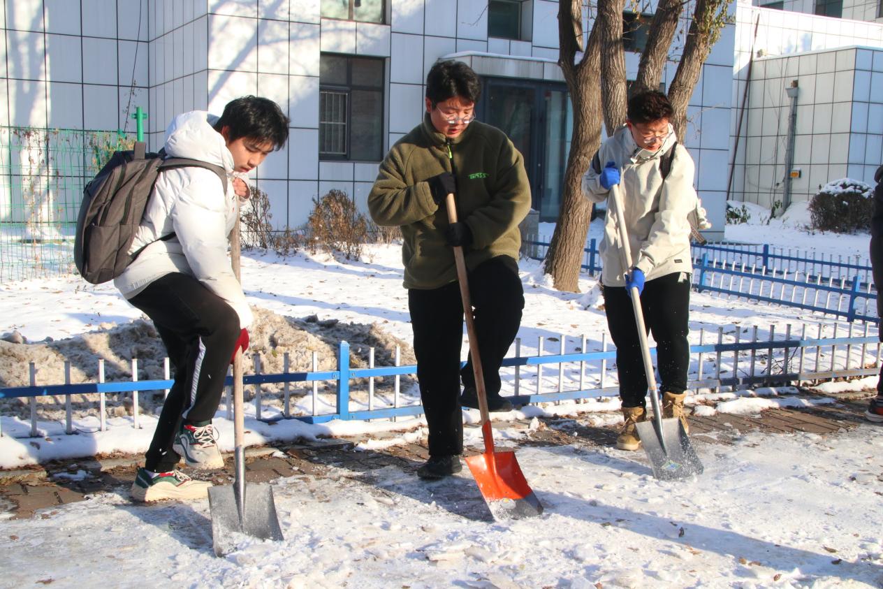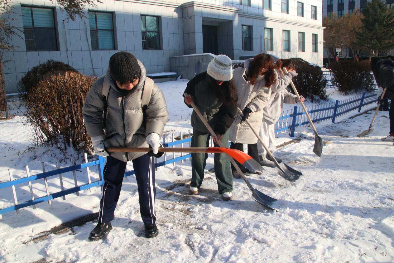 为了确保清扫工作安全高效开展,同学们根据事先制定的计划,从工具领取、物资发放以及现场调度等多方面进行了详细分工。在清扫过程中,同学们积极沟通、互相关心,不畏严寒、全情投入。天寒而不寒人心,同学们配合默契,以实际行动彰显了哲社学子的责任与担当。一道道忙碌的身影,成为银装素裹的校园中靓丽的风景线,让寒冬变得格外温暖。