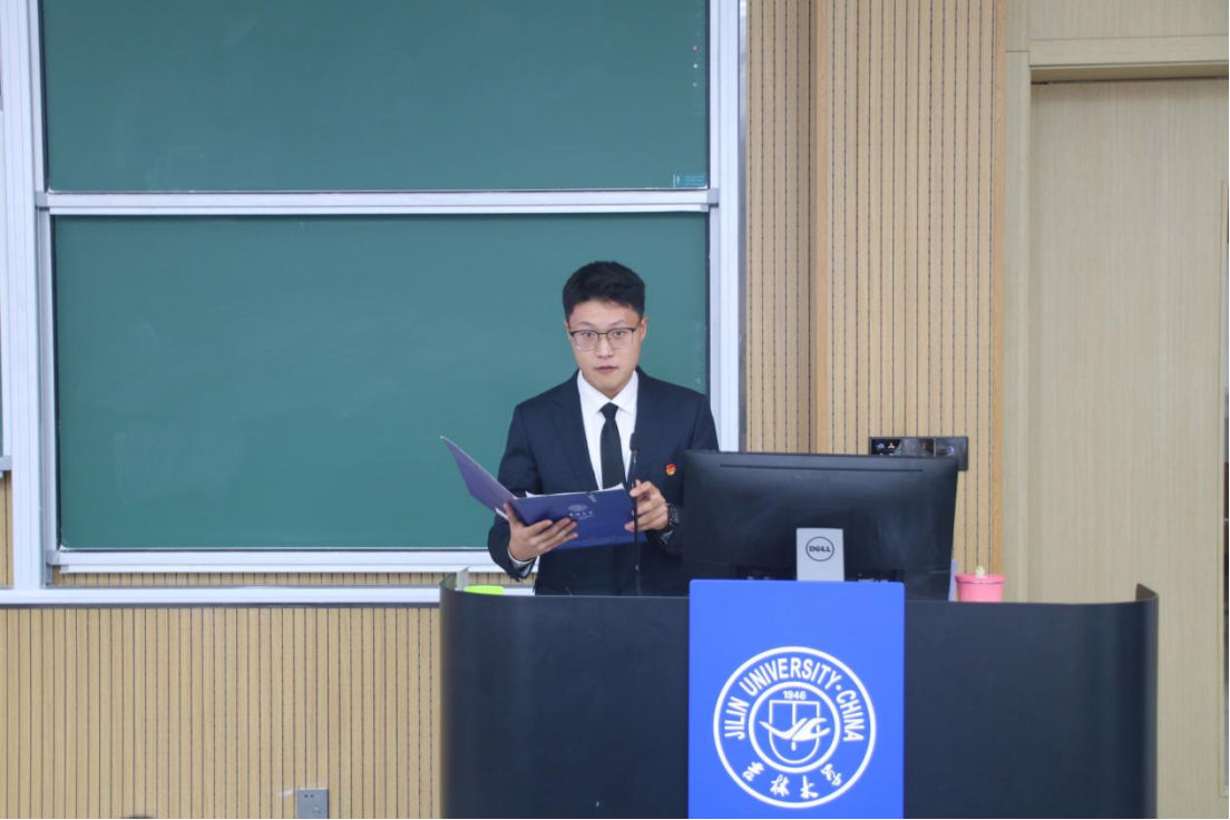大会第七项,2023级新生代表赵泽坤发言。赵泽坤同学表示作为一名吉大学子,深刻感受到了吉大深厚历史文化传统中所蕴涵的红色基因、红色血脉以及百年未有之大变局中吾辈青年应当勇担时代重任的呼唤,并激励同学们一道砥砺自我,为中华民族伟大复兴的中国梦贡献自己的一份力量!