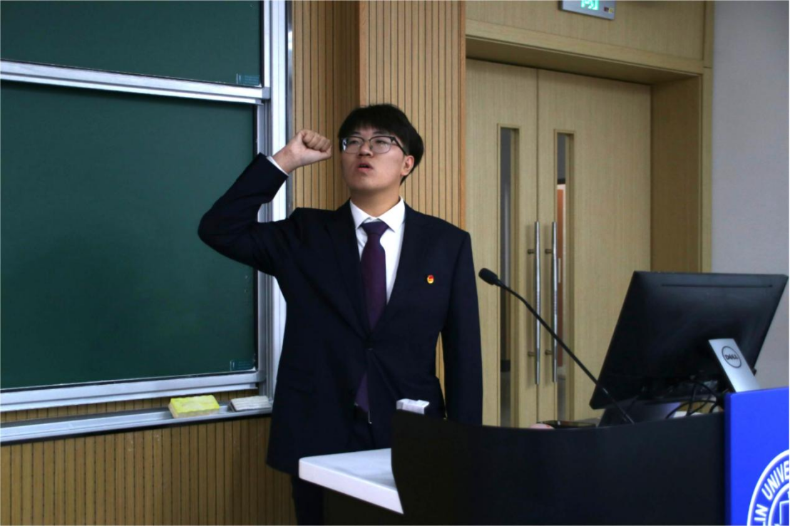 大会第二项,团委组织部负责人张天同学带领同学们重温入团誓词。在“为共产主义事业而奋斗”的澎湃之声中,所彰显的是“请党放心,强国有我”的青春誓言。