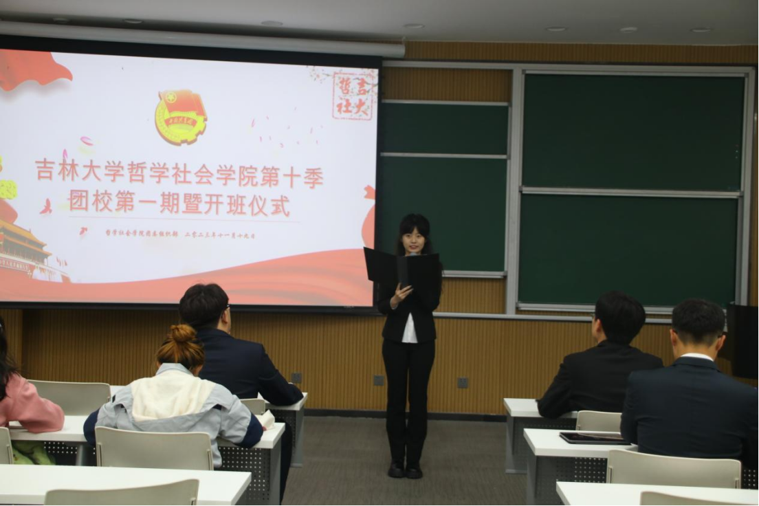 第十季团校开班仪式暨第十季团校第一期课程在逸夫教学楼第四阶梯教室举行。本次活动由学院团委举办,2022级本科生赵家仪同学主持,学院团委主要学生负责人以及全体2023级本科生同学们出席并开展交流学习。
