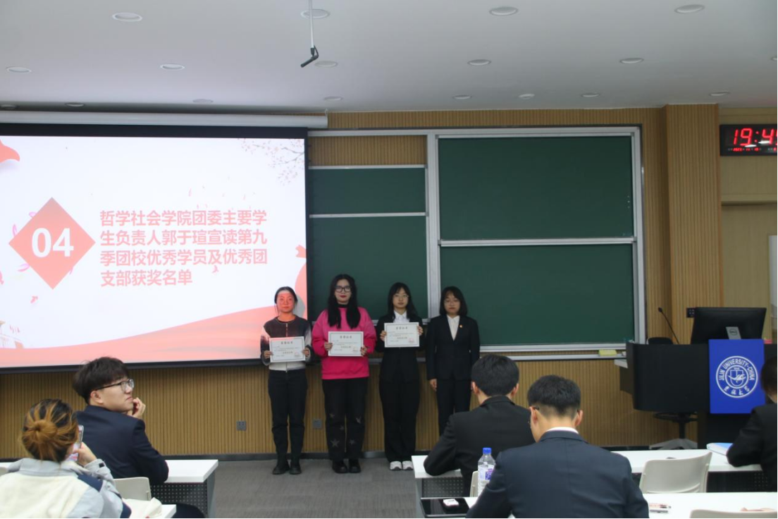大会第四项,团委主要学生负责人郭于瑄同学宣读第九季团校优秀学员及优秀团支部获奖名单。