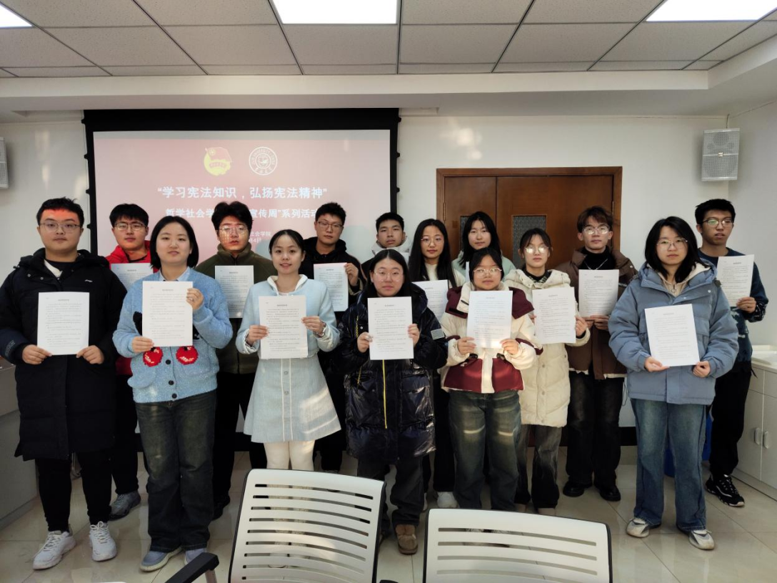 将进一步营造自觉遵守宪法、学习宪法、维护宪法的良好氛围,认真学习贯彻党的二十大精神和习近平法治思想,引领广大青年学子坚定理想信念,强化使命担当,以哲社青年的实际行动,让青春在全面建设社会主义现代化国家的火热实践中绽放绚丽之花。