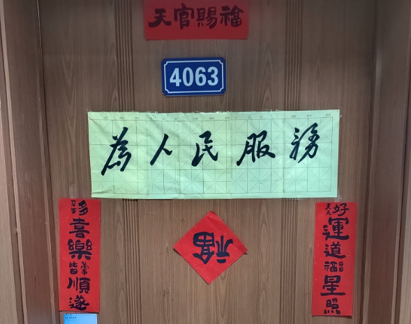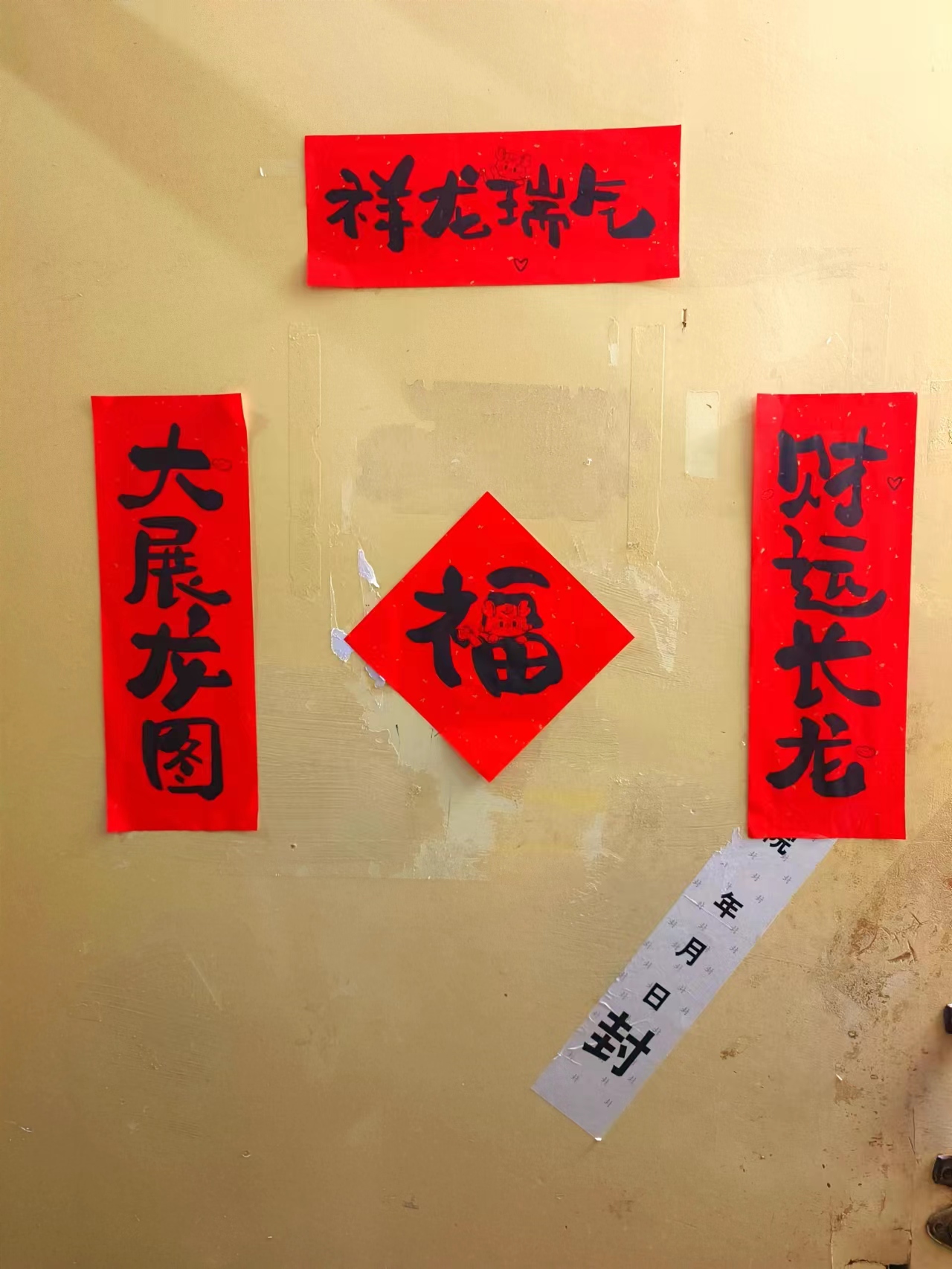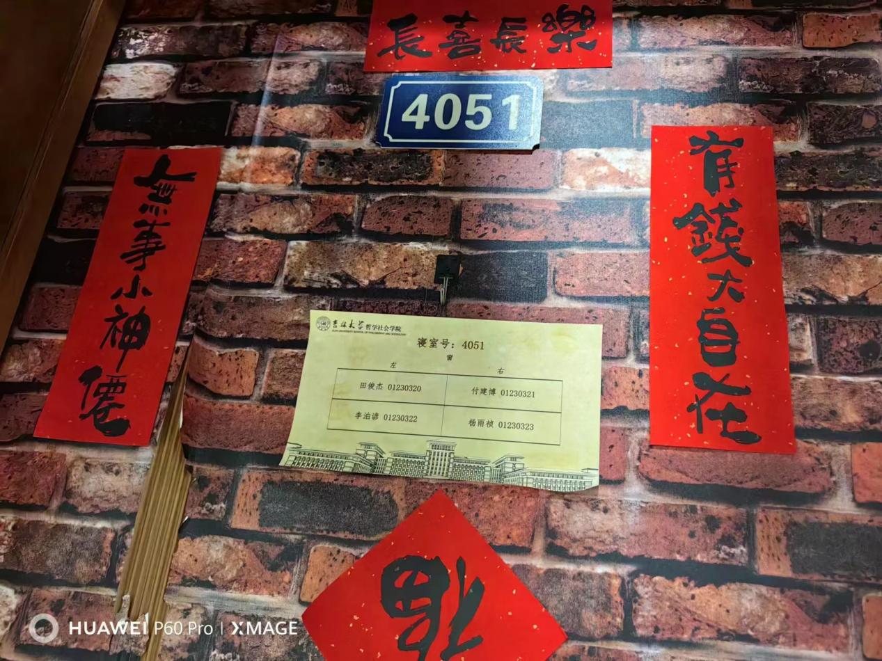 学生会和生活管理委员会提前购置了具有“龙”年特色的对联、福字,在各位老师的带领下,同学们纷纷动手贴上寓意着幸福美好的春联。一个个“福”字和拥有美好寓意的春联整齐地挂在门前,寝室走廊被浓郁的节日气息和喜庆的红色铺盖,浓浓的年味扑面而来。