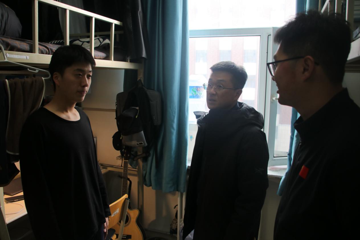 来到寝室中,刘培强老师就公寓安全向同学们进行强调,提到离开宿舍前务必检查宿舍安全情况,关好门窗,切断电源,禁止在宿舍使用明火和违禁电器,杜绝火灾隐患;外出看管好贵重物品,持续提高警惕,谨防网络电信诈骗“陷阱”,避免个人生命财产损失。